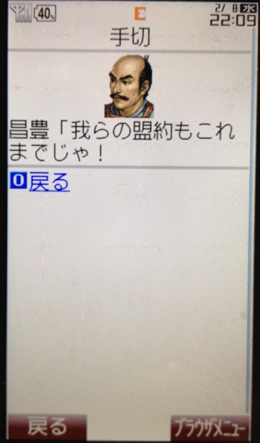 実は反対側から大福大将も進軍して来て、紅蓮VS畠山VS大福大将の三つ巴戦になった末に、大福大将に軍配が上がったのですΣ(゚Д゚) やばい!畠山滅亡権は大福大将との競争になる!と、その日はすぐに畠山の残る1城に進軍 これに備えて兵の練度(強さ)はマックスの200まで上げておいた だがウチは戦の強い武将が乏しい…… 頼む…勝ってくれ…ッ(>人<) その結果が今日出ました |